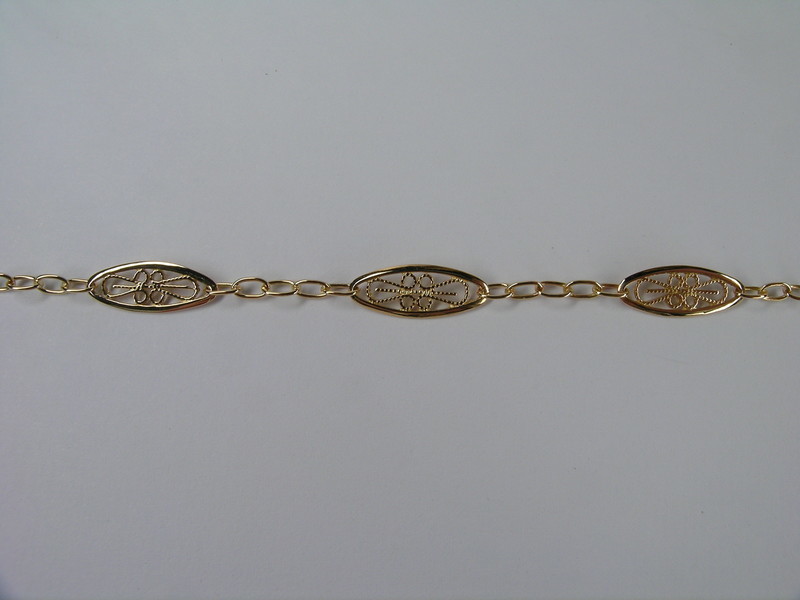 Chaine traditionnelle de Savoie en or rose 750 millièmes, mailles filigranes de forme olive alternées avec 5 mailles forçats rondes. Elle vous séduira pour son élégance et sa finesse. Elle peut se porter seule ou avec une croix de Savoie.