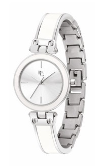 Montre B&G precious bangle pour femmes . Montre en bicolore blanc et gris, avec bracelet en metal. Horloge avec cadran gris avec boîtier gris et blanc et index gris.