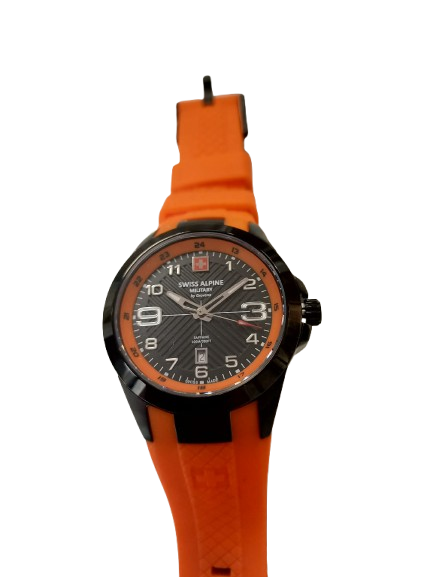 Cette montre pour femme acier de la marque SWISS ALPINE MILITARY est de forme ronde avec un cadran noir, des chiffres arabes et la date à 6 heures . Elle vous séduira pour sa sobriété et pour son mouvement Suisse et son côté sport . Elle est dotée d'un bracelet plastique orange. Son verre étant en saphir, il résistera plus longtemps aux rayures.